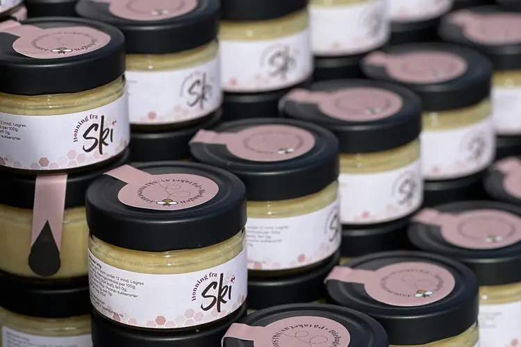 Honningen ble deretter fylt på glasskrukker, og voila så fikk vi vår helt egen Skihonning! Glass med honning fra Ski kan nå kjøpes i Kundeservice på senteret. En søt gave til deg selv eller noen du er glad i!
