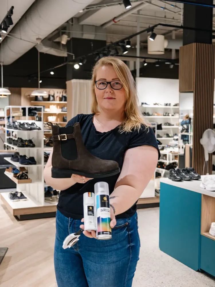 Eurosko er en annen butikk på senteret med stort fokus på bærekraft og miljø. De har i tillegg til et stort utvalg sko alt du trenger for å ta vare på skoene dine. De anbefaler å pleie skoene slik at de varer lenger og anbefaler også å reparere fremfor å kjøpe nytt hver gang. Det er for eksempel viktig å benytte skopleie forebyggende. Jevnlig bruk av skokrem og impregnering gjør skoene mer holdbare.