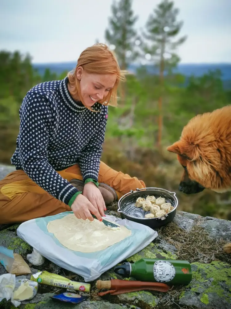 Som friluftsfrelst og med utallige timer og døgn bak seg ute i naturen sommer som vinter, har Bodil fått mer erfaring i kokkelering under åpen himmel enn de fleste av oss. Våren er hennes favorittsesong, på denne tiden av året spiser hun måltider ute så ofte som mulig. Hun pakker gjerne med seg vaffeljernet i sekken, og baking på bål er også blant favorittene. Med litt forberedelser før hun drar hjemmefra kan det fort bli alt fra pizzabunner til kanelsnurr og deilige rundstykker.