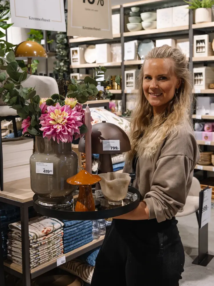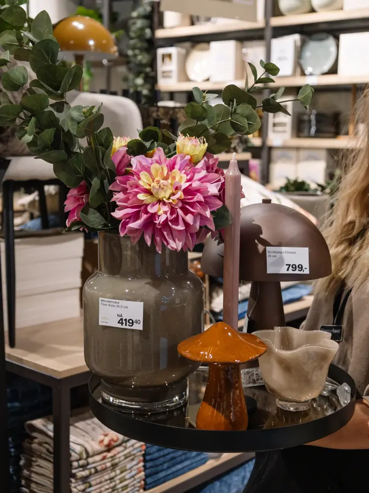 La deg inspirere av trenden med naturtoner når det kommer til dekor som vaser, bordlamper, skåler og pyntegjenstander. Denne høsten er også elementer som bølgete kanter virkelig i vinden. Dette tilfører et spennende blikkfang og gir et mer levende uttrykk – like fine som dekor i seg selv, som med greiner, strå eller sesongens blomster. Her kan du for eksempel lett gi uttrykket et friskt løft ved å supplere med fargede blomster. Hos blant annet Kid Interiør og Kremmerhuset finner du dekorative elementer som både føles moderne og tidløse på samme tid.