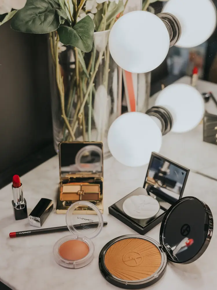 For øynene er Sisley paletten i gull- og bruntoner et sikkert valg – sofistikert, varm og enkel å bygge opp for mer intensitet. En frisk blush fra MAC gir naturlig glød, og med den silkemyke bronzeren fra Giorgio Armani får du definisjon og en solkysset finish som løfter hele looken.