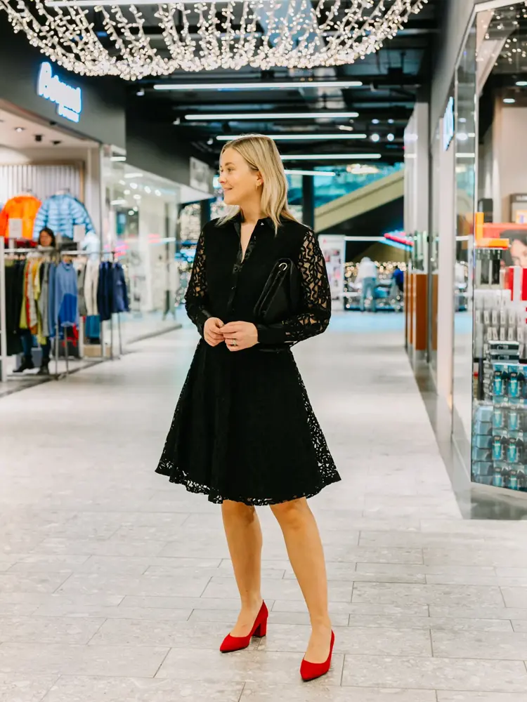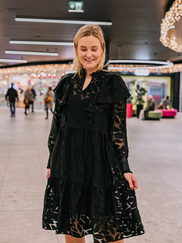 Et sikkert valg til enhver pyntet anledning er den lille sorte. Den kommer i veldig mange ulike fasonger, materialer og lengder, så alle kan finne noe som passer seg. Vi har plukket ut to fra senteret som vi vil vise dere. Begge har lange ermer og gjennomsiktig blomstermønster, men den ene er litt mer “preppy” og tettsittende enn den andre. Disse to finner du hos Haust og Match.