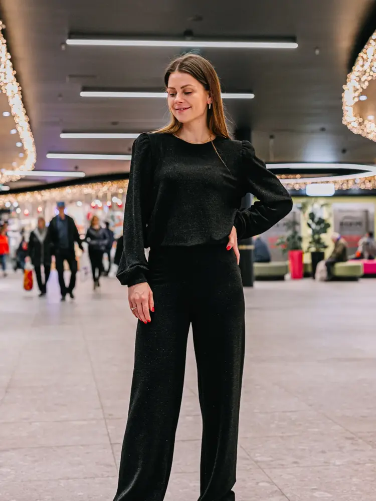 Ikke så veldig langt fra dressen finner du two piecen eller jumpsuiten. Begge disse er også kjempe fine alternativer til nyttårsaften. Vi har funnet et fint sett fra Match, det er sort med litt glitter i, og det er super behagelig på. Dette er også plagg som føles litt varmere enn kjoler og skjørt, og for deg som trives best i bukser så er dette et kjempefint alternativ.