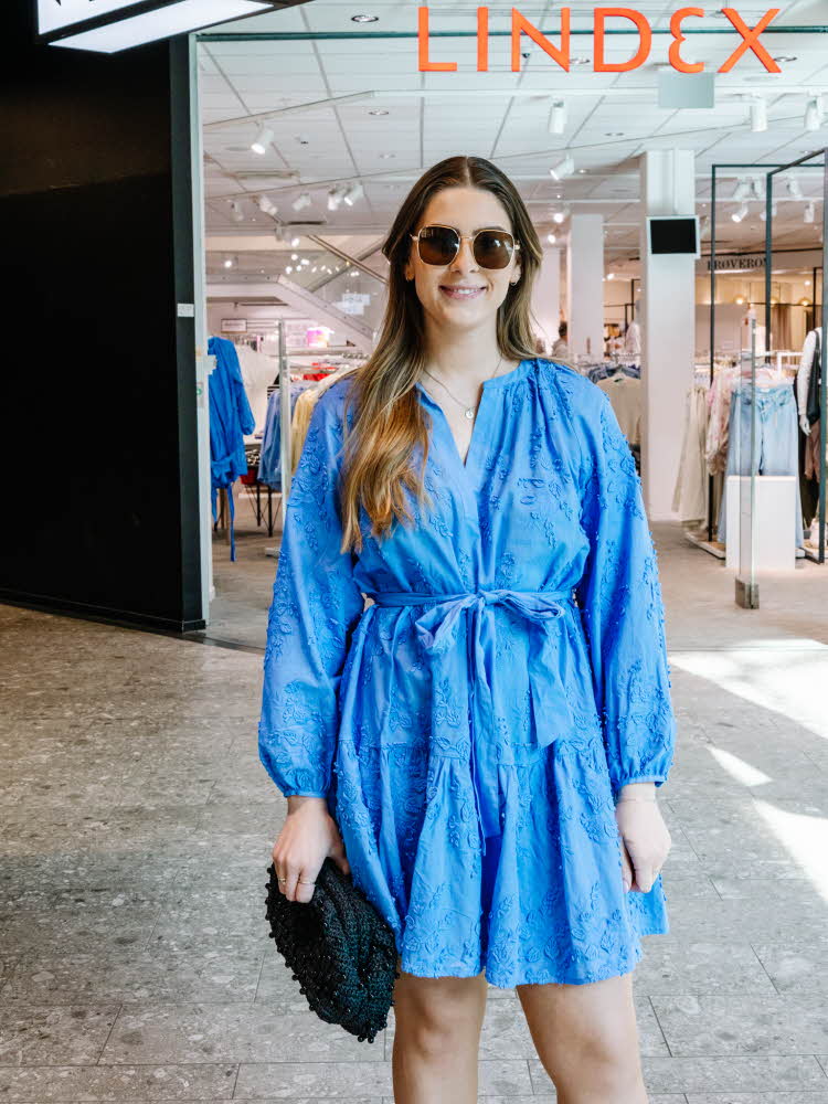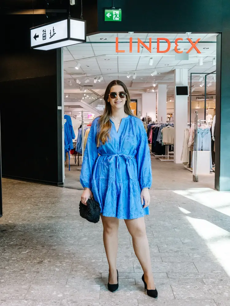 En fargerik sommerkjole er et perfekt antrekk til festen. I butikkene finner du mange fine kjoler i ulike farger og stiler. Gå for en klassisk ensfarget kjole eller en med mønster. Lindex har et flott utvalg av sommerkjoler, og en av våre favoritter er deres blå blomstret sommerkjole. Med en fin sommerkjole i garderoben har du alltid noe å ha på til sommerens festligheter. Style sommerens kjoler med høye hæler, et par flate sandaler eller vår - og sommerens trendsko - ballerinasko. Eller kanskje en paljettveske til?