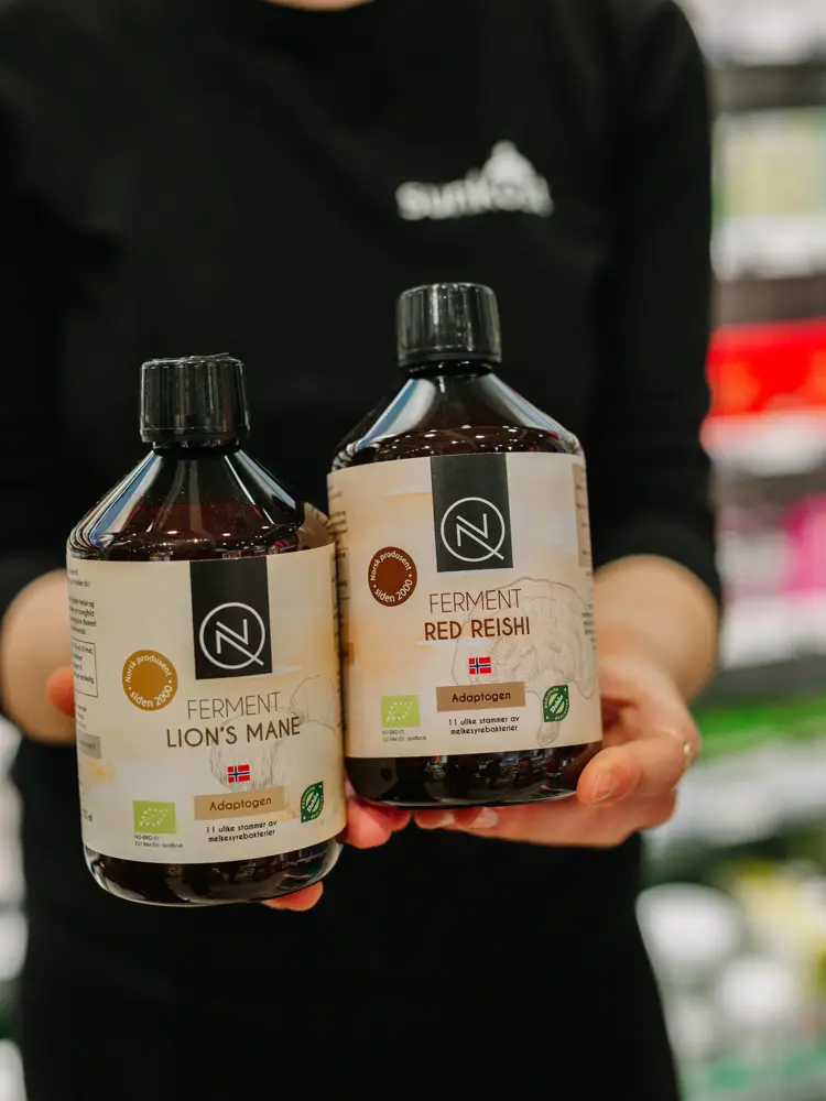 Tilskudd av melkesyrebakterier er svært gunstig å ta når du ønsker en godt fungerende fordøyelse. Kroppen har det man kaller en normalflora, det vil si en sammensetning av melkesyrebakterier. Noen ganger oppstår det ubalanser i normalfloraen i tarmen og da kan det være nyttig å tilføre litt ekstra av de gode melkesyrebakteriene, enten via syrnede melkeprodukter tilført bakteriekulturer eller via kosttilskudd. Sunkost tipser om Ferment Red Reishi og Ferment Lion's Mane. Økologisk fermentert drikke som inneholder levende melkesyrebakterier. Ferment er melkesyregjæret med godt dokumenterte og vitale stammer av viktige tarmflorabakterier. Sopp og fermentert mat er bra for både fordøyelsen og næringsopptaket, her får du dem i ett og samme produkt.