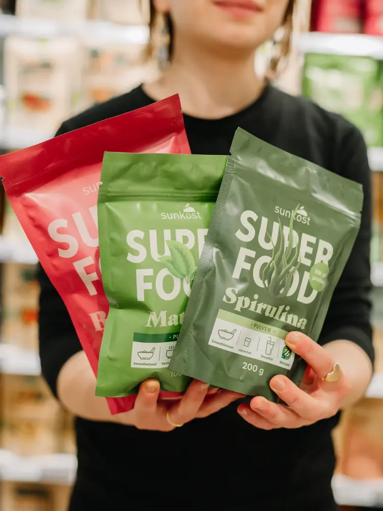 En god frokost gjør at du får en skikkelig god start på dagen! Hva med å for eksempel starte dagen med en smoothie bowl? I den kan du putte både frukt, grønnsaker og kosttilskudd som gir kroppen din en skikkelig boost på morgenkvisten. Nå har Sunkost lansert sin egen serie med supermat som passer godt i smoothie, smoothiebowl, topping, kjøleskapsgrøt, shaker, greenshot, sunnere snacks og mye mer. Disse er proppfulle av råvarer med det beste og reneste fra naturen.