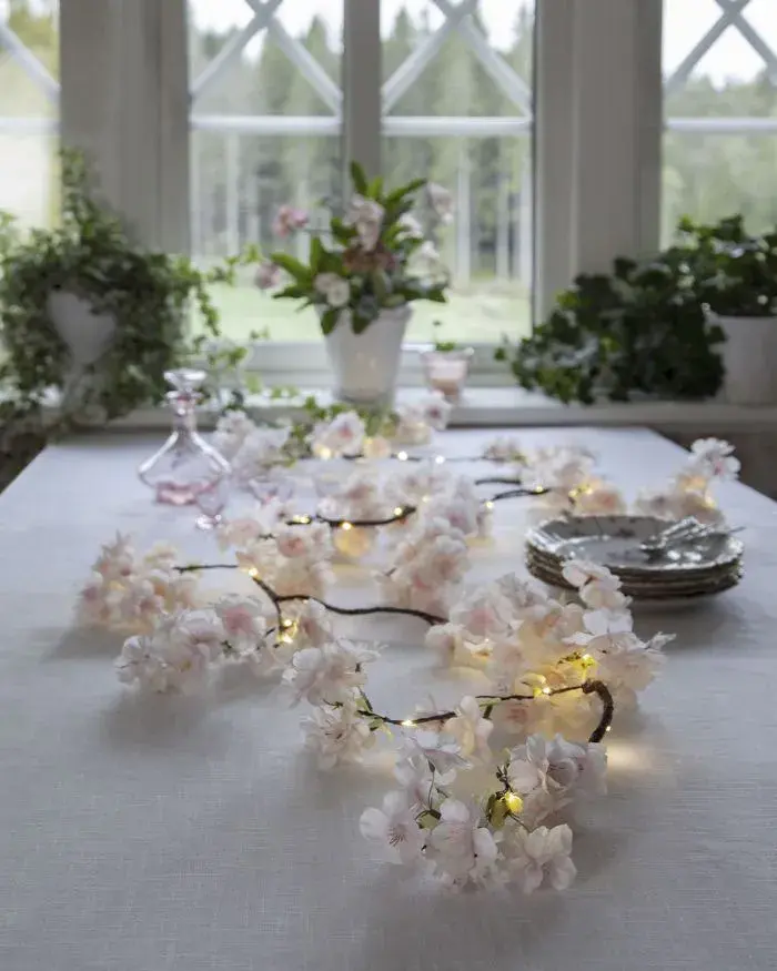 Lyslenker kan draperes over bordet, henges opp eller legges rundt serveringsfat for en stemningsfull effekt. Vi har kule slynger formet som skjell, olivenblader og kirsebærblomster for å nevne noe.