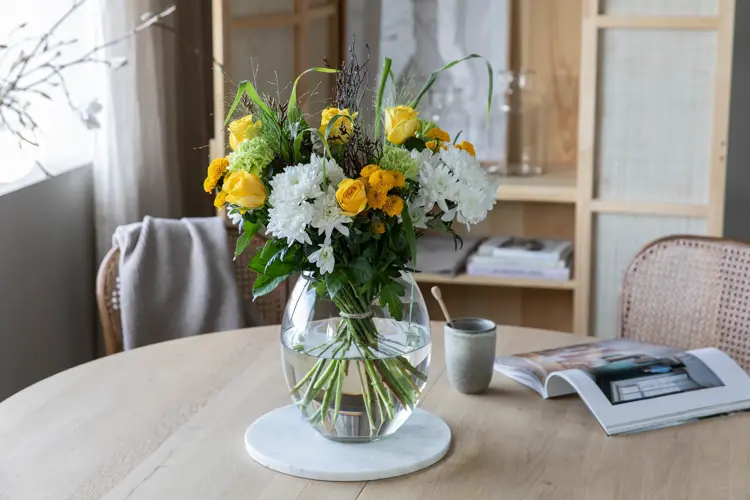 Ukraina trenger vår hjelp. Frelsesarmeen har 30 års fartstid i området og har lokalt ansatte og frivillige i Ukraina og landene rundt, som hjelper krigsofre med vann, mat, husly, praktisk bistand og nødvendig omsorg. Frelsesarmeen har et etablert og effektivt system som gjør at hjelpen kommer raskt ut til de som trenger det mest. Mester Grønn ønsker å gi et bidrag til dette livsviktige arbeidet og har laget en bukett til kr 300,- der kr 100,- går direkte til Frelsesarmeens arbeid for Ukraina.