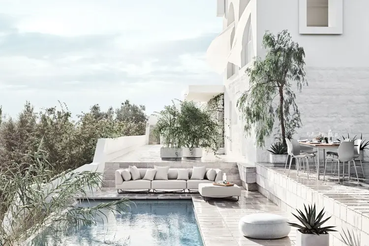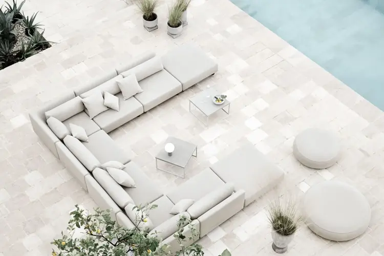 En utendørsversjon av vårt klassiske Como-sofabord. Designet med samme elegante enkelhet i svært holdbare og utsøkte materialer som glir vakkert inn i det naturlige miljøet. Bordplaten er fremstilt i vibrobetong, sandfarget el er mørkegrå med en matt overflate. Designet for å passe sømløst sammen med de andre designene i vår Outdoor Collection. Ta godt vare på utemøblene dine med våre spesialpleieprodukter.