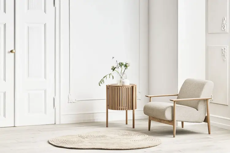 En innbydende lenestol med en distinkt, men velkjent stil, inspirert av klassikerne i skandinavisk design fra midten av forrige århundre, men med en utpreget moderne vri. Et mykt og behagelige volum som flyter i den elegante rammen laget i solid, FSC-sertifisert eik. Stolen har armlener med flat topp hvor du kan plassere en drink, bok eller et mellommåltid mens du slapper av og hviler deg. Setet er konstruert for maksimal komfort i holdbart, formstøpt møbelskum. Designet av italienske Studio Nooi.