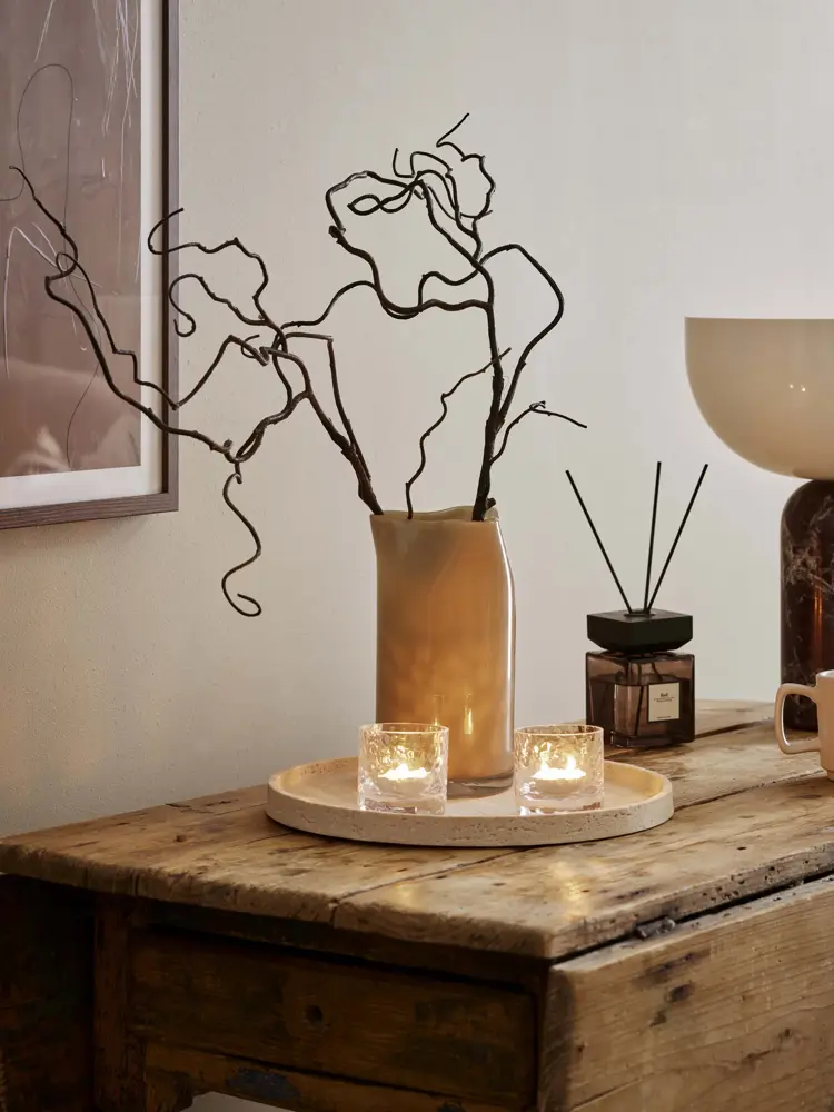 Vi mikser materialer og teksturer for å skape liv og kontrast, og setter prikken over i-en med små dekorative elementer som dyrefigurer og naturinspirert pynt.
