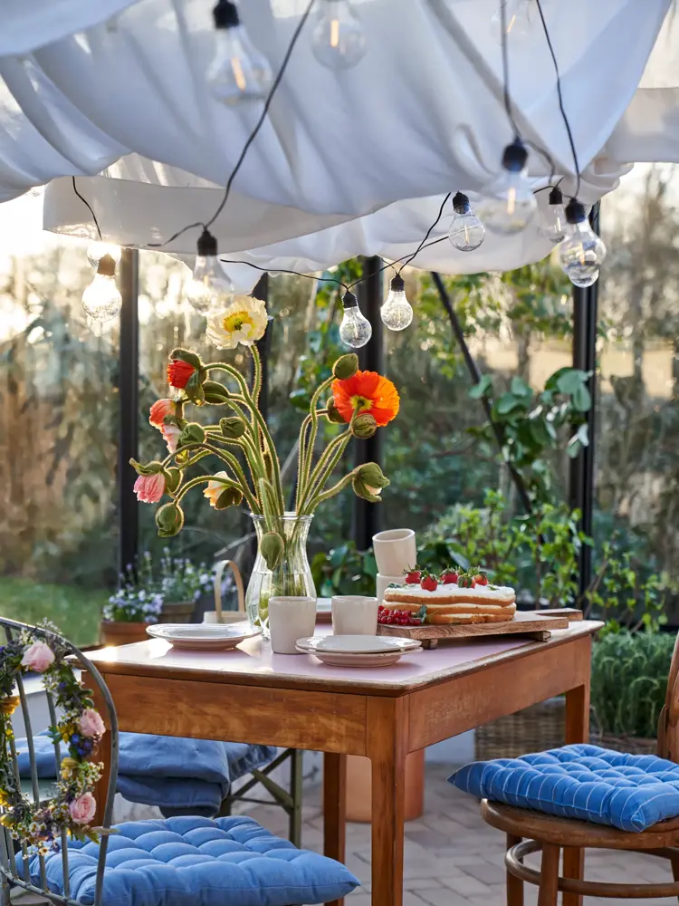 Gi rom for hyggelige stunder i hagen, på terrassen eller balkongen. Utforsk nyhetene som blant annet inneholder lysende lanterner, puter i flotte farger og et vell av blomsterpotter. Med det nye utvalget ønsker Søstrene Grene å inspirere til å innrede hyggelige kriker og kroker i uterommet der morgenkaffen eller kveldssolen kan nytes.