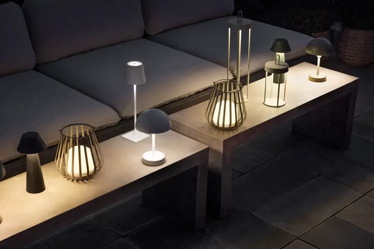 Velger du bærbare lamper som er merket med IP44, tåler de å stå ute også i en regnskur. Vi anbefaler likevel alltid å ta med de bærbare lampene inn sammen med putene om kvelden.